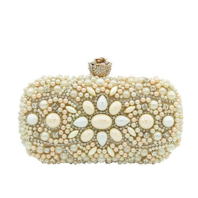 Model Number: MIL0693 Champagne Beaded Crystal Evening Clutch Bags